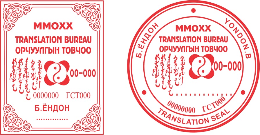 Мөн орчуулагч Та бүхэн орчуулагчийн тамга /тэмдэг/ дарахдаа нотариатчийн тамга, баталгааны тэмдэгтэй давхцуулахааргүй дарах нь зүйтэй.
