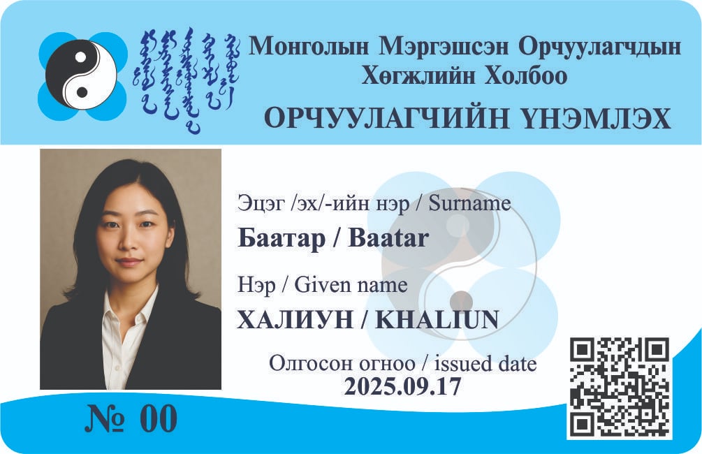 Монголын Мэргэшсэн Орчуулагчдын Хөгжлийн Холбооны гишүүн, орчуулагч нарын үнэмлэх болон гэрчилгээ нь цаг үеэ дагаж QR кодоор баталгаажсан нь хуурамчаар үйлдэх боломжийг хаалаа.
